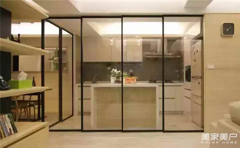 佳洁斯16极窄三轨连动推拉门可三扇重叠,最大开启三分之二的空间,大于二分之一,视觉空间更为广阔。