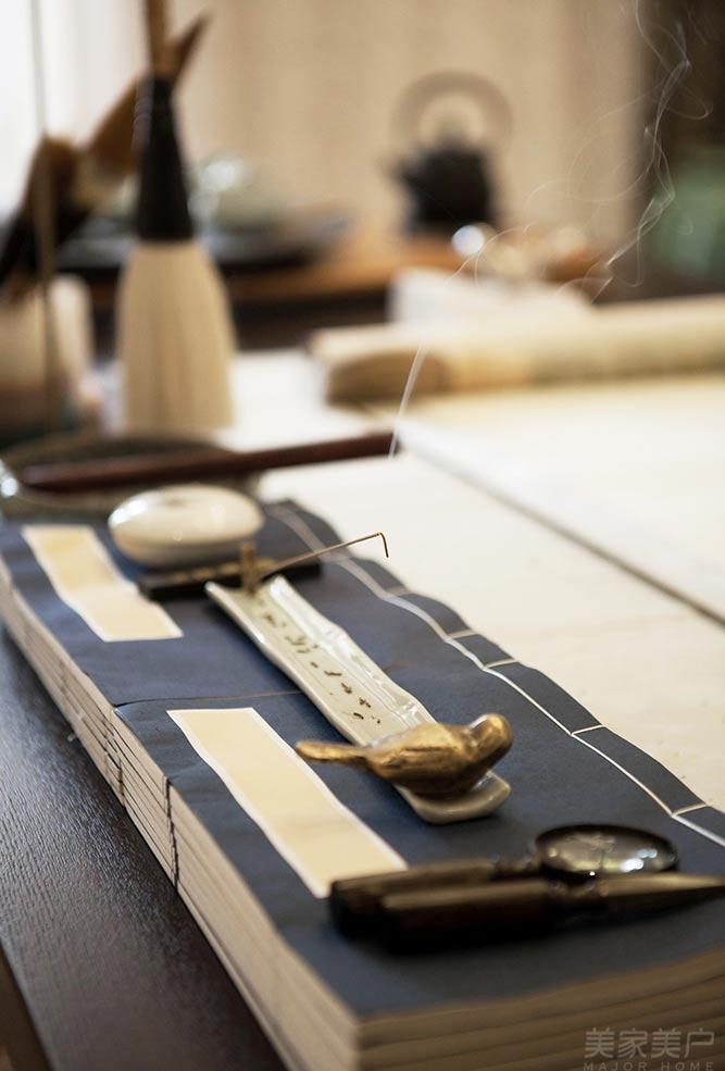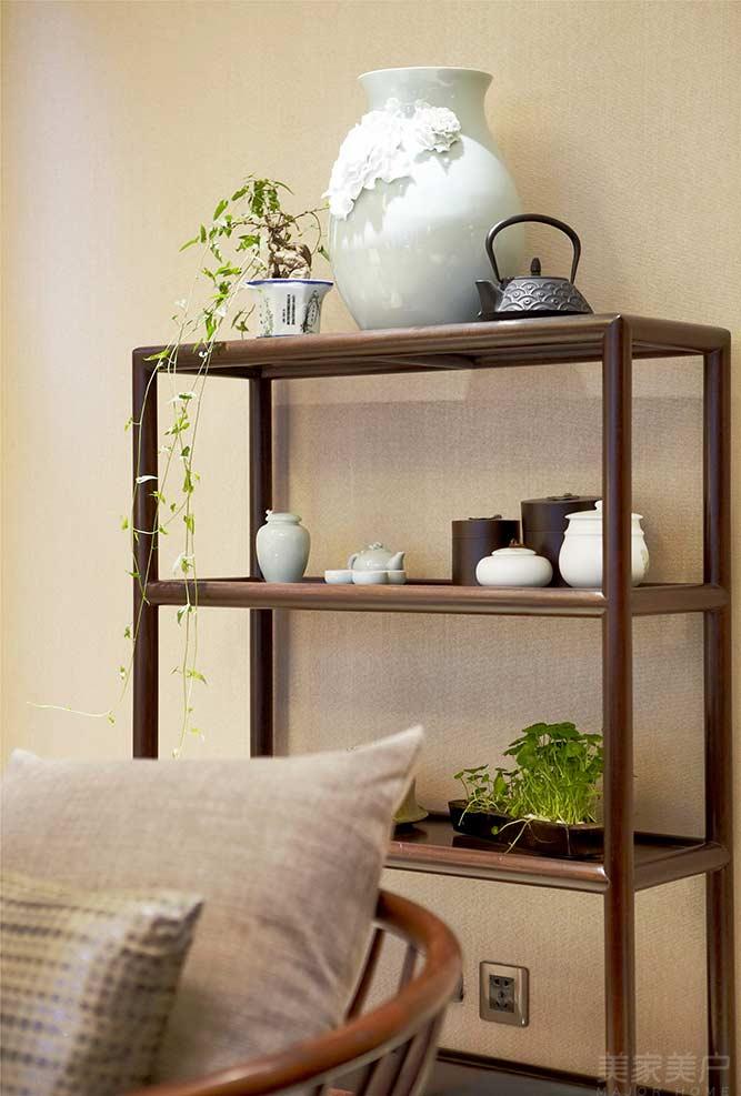 在几案上摆设陶瓷、花瓶等器物,也能起到“画龙点睛”的作用,来营造东方特有的禅意。