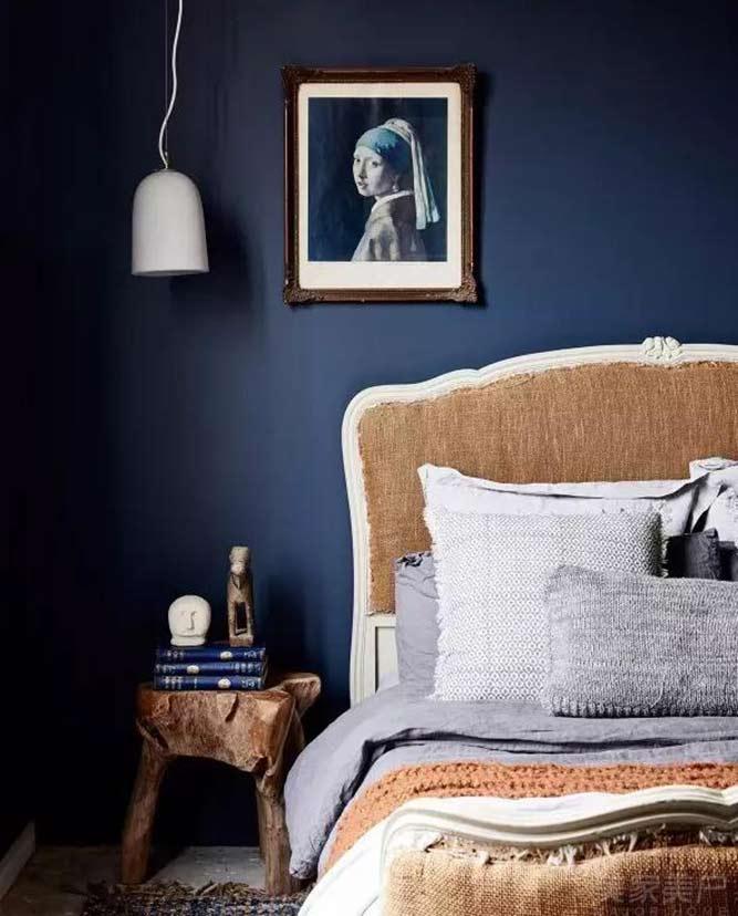 卧室和其他空间很不一样,墙面被戏剧性的刷成了蓝墨色,没有什么特殊的材料,多乐士的一款涂漆而已。穿过明亮的客厅和走廊,你可能会觉得主人实在有点喜怒无常。但你不得不感叹设计师对于空间和色彩的把握。