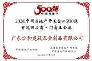 合和荣获2020中国房地产开发企业500强首选供应商品牌