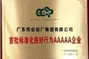 广东伟业铝厂集团获得首批标准化良好行为AAAAA企业