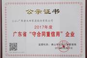 广东金大田家居股份有限公司获评“广东省守合同重信用企业”荣誉称号