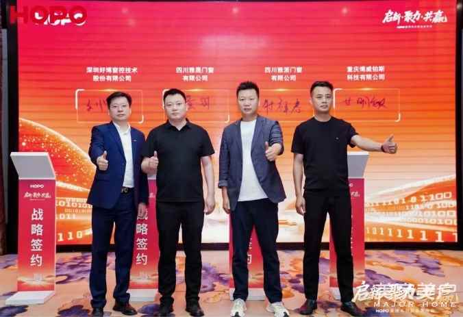 以信任缔结合作,以聚力共创未来。活动现场迎来重磅战略合作签约环节,19家优秀门窗企业与HOPO好博窗控现场共同签署战略合作协议,定格同心同行的重要时刻。此次集中签约,标志着HOPO与西南区域伙伴建立更深层次的战略合作关系,携手构建更稳固、更高效、更具活力的产业生态。