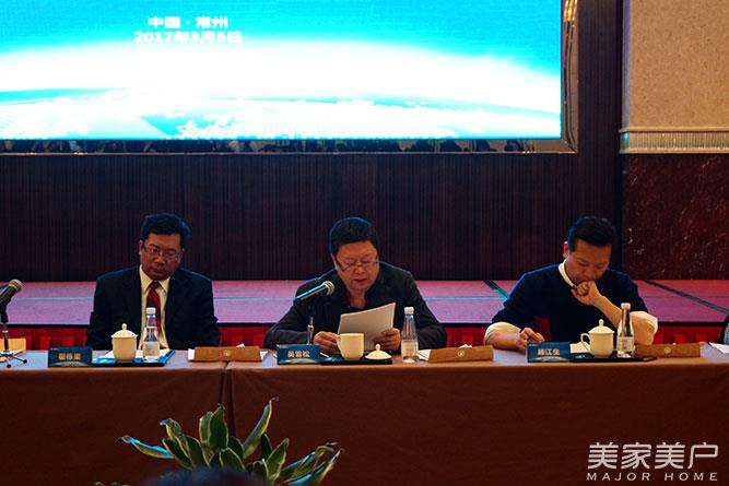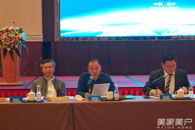 欧派家居集团董事长姚良松宣读《成立全国工商联家具装饰业商会提案工作委员会事项》