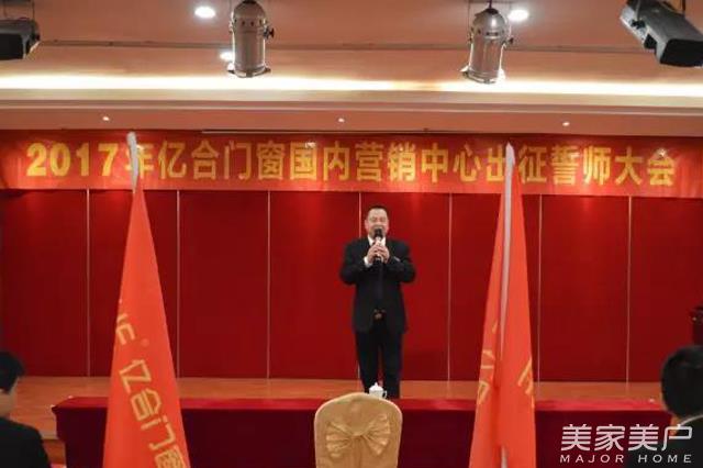 3月8日,“亿合门窗2017年国内营销中心出征誓师大会”于佛山海逸大酒店隆重举行,董事长曾奎先生与亿合门窗五大战区销售精英共同参加会议,会议由国内营销中心总监申畅先生主持。