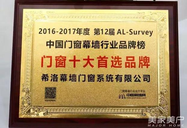 匠心传承,荣耀加冕!希洛系统门窗被评为“门窗十大首选品牌”!