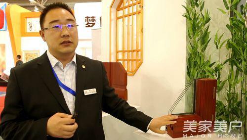 “比如我们此次展出的78系列的铝包木门窗,木材采用的是非洲的花梨木,材质是同行业内比较少的,三玻两中空设计,玻璃的槽口可以达到30毫米以上,玻璃可以做钢化、镂艺等,进口的是德国诺科五金件,油漆是德国的雷诺克水性漆,通过清漆工艺进行涂装,质感和装饰的效果是相当不错的。”吉户门窗温久涛在接受搜门网记者时表示。
