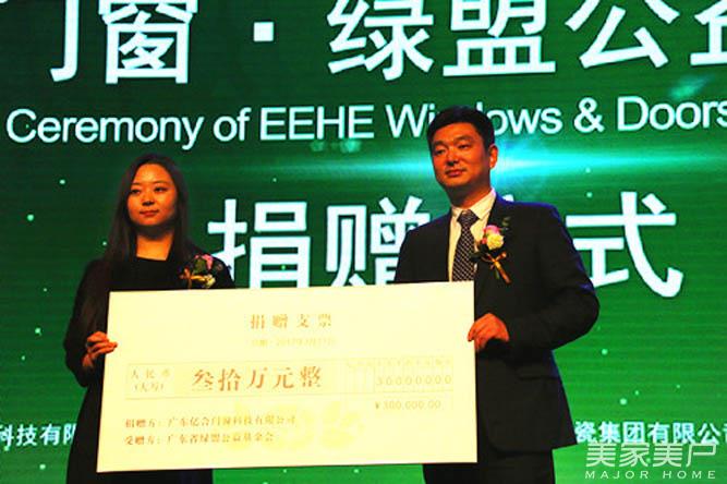 环境与资源部主任于晓东先生、居然之家总裁助理田俊先生、金意陶陶瓷集团董事长何乾先生、亿合门窗董事长曾奎先生、广东省绿盟公益基金会副秘书长李倩女士上台,共同开启“环保门窗中国行”!亿合门窗还向绿盟基金会捐助三十万元,用于“中国美丽乡村计划”的落实。绿盟公益是国内首家专注于“中国美丽乡村”建设的公益组织,由绿行者同盟携手亿合门窗等一批具有强烈社会责任感的企业联合发起成立。以“绿行中国,创福全球”为宗旨,以“环境教育,政策催生,建设推动,文化传承”为重点任务,推动中国美丽乡村建设,为社会绿色梦想而努力。