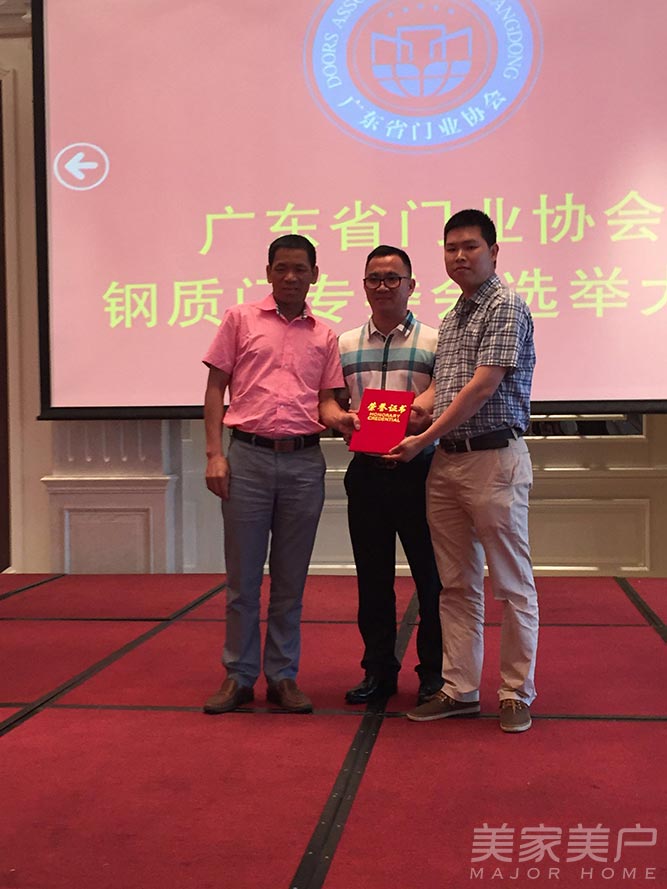 在进行章程和选举办法表决环节,计票人、监票人、唱票人和选举办法、《广东省门业协会钢质门专业委员会章程》均以举手方式全票通过。会上,还通过填写选票方式选举产生广东省门业协会钢质门专委会会长及执行会长。通过选票统计,大会最终选举产生广东省门业协会钢质门专业委员会首任会长为佛山金大田门业有限公司董事长吴奋谋,执行会长佛山东亚钢门有限公司董事长梁伟强。佛山市荣高智能科技有限公司黄荣高、广东大吉门业有限公司李友泉、广东碧达门业有限公司李碧坚、开平艺和门业有限公司关国庆、广东金名羊门业科技有限公司麦荣周、佛山圣田智能科技有限公司周仲辉、佛山汇时美五金制品有限公司林群栋、佛山福裕门业有限公司古国冠、广州钰盾门业有限公司 贺源粮、佛山晟王门业科技有限公司王日成、中山恒昌金如意门业有限公司梁培旺、佛山金运晖金属制品有限公司陈孝银、佛山市富贵龙门业有限公司罗云强、佛山丽新门板董事长李艾武、广州市鸿基门业有限公司许志球、广州盾卫士金门有限公司林晓东为副会长单位。