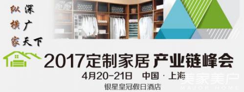 4月20日,上海银星皇冠假日酒店,2017定制家居产业链峰会,听家居大“牛”们告诉你:困难要如何应对?机会会在哪里?未来的家居制造业是什么样子?