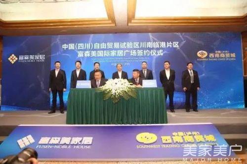 4月10日,在中共泸州市委书记蒋辅义,市委副书记、市长刘强等泸州市委、市政府领导的共同见证下,随着成都富森美家居股份有限公司董事总经理刘义与四川川南大市场有限公司总裁卢朝寿在合作协议上落笔签约,富森美第一个跨区域连锁化管理项目——富森美国际家居广场正式落户中国(四川)自由贸易试验区川南临港片区,标志着富森美家居将全面推进对外扩张步伐。