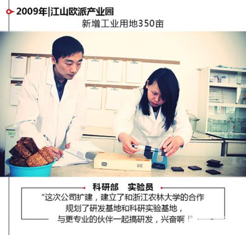 如果你认为这是一种野蛮生长,那我们就带你看看江山欧派在接下来是怎么做的。蒋雯丽的代言让江山欧派的品牌形象产生了质的飞跃,与此同时,江山欧派在2009年新增工业用地350亩,和浙江农林大学合作规划研发基地和科研实验基地,在产品研发方面做足功夫。