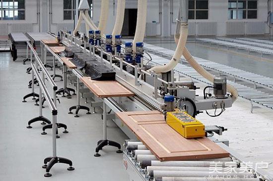 索菲亚华鹤门业工厂门扇边缘辊涂机