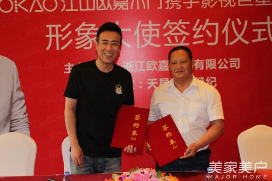 5月19日,欧嘉木门携手影视巨星于和伟形象大使签约仪式在北京举行,于和伟正式成为欧嘉木门的形象大使。于和伟本人和欧嘉门业董事长周顺华、总经理柴位才、销售副总经理汪涛、财务总监刘珠花等参加了签约仪式。