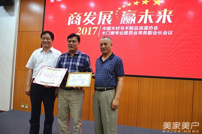 会议期间,为表示对本次会议的大力支持,刘能文会长和李佳峰秘书长为汇龙陈辉庭董事长送上致谢信表示谢意,授予汇龙涂料有限公司“2017年中国木材与木制品流通协会木门窗专业委员会常务副会长会议承办单位”荣誉称号。此外,多家木门企业与汇龙公司达成合作意向。