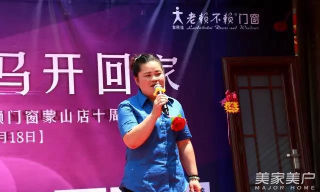 蒙山店店长秀姐对自己过去十年经营老赖不赖门窗的情况进行了简要回顾,并表示在新十年里,紧跟总部的步伐,用心经营,为用户朋友们提供更安全的产品和更舒心的服务。用户代表陈先生对蒙山店十周年庆表示祝贺,同时分享了自己购买老赖不赖门窗的心得,陈先生祝愿老赖不赖连锁体系越来越强大,惠及更多的百姓。