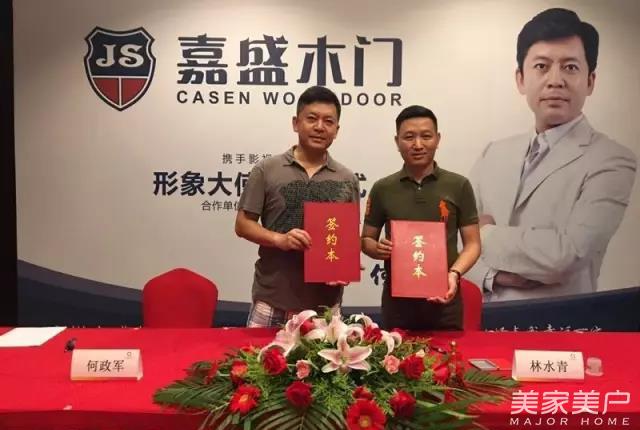 热烈祝贺嘉盛木门与何政军老师正式签约,共扬门艺,爱传万里。