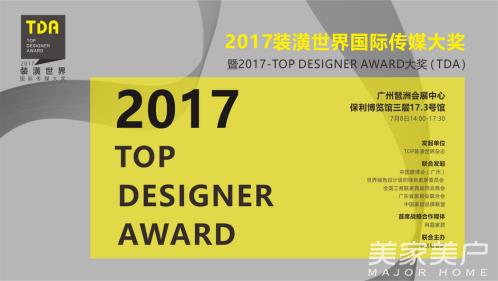 荟萃世界顶尖设计大师的2017装潢世界国际传媒大奖(TDA)颁奖盛典将于7月8日下午两点在广州保利世贸博览馆三层17.3号馆隆重举行,来自全球的设计大咖齐聚,共献一场设计饕餮盛宴。