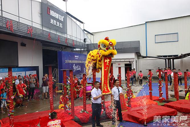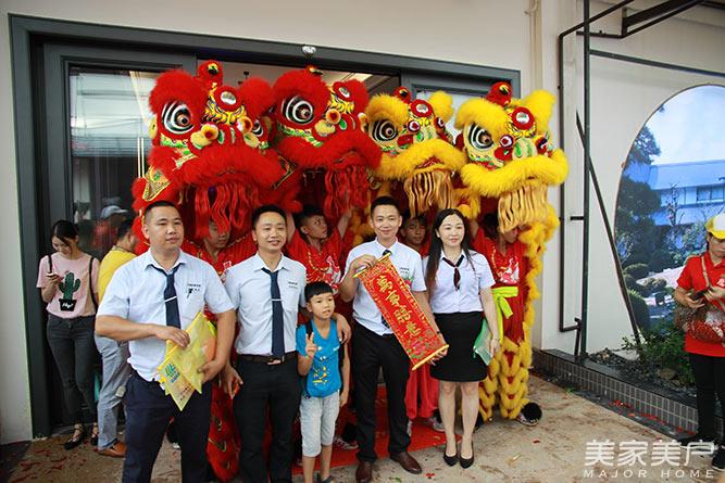 广东省门业协会副秘书长饶德亮、佛山市门窗业协会执行会长兼秘书长户诚、佛山市河源商会副会长刘少文、“铝班门窗”总经理温立峰、“龙脉叁加伍门窗五金”总经理龙紫兵、“铝班门窗”营销总监蒋云辉等数位嘉宾受邀上台参加开业剪彩仪式。盛典上,“铝班门窗”总经理温立峰及“龙脉叁加伍门窗五金”总经理龙紫兵一起为新厂举行揭牌仪式,由此揭开了“铝班门窗”成长腾飞的里程碑,他们将见证并引领着“铝班门窗”未来的蓬勃发展!此外,“铝班门窗”还举行了醒狮点睛仪式及舞狮表演,预示着“铝班门窗”乔迁后生意将红红火火、财源广进。