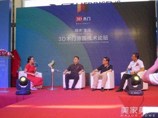 由网易家居全国总编辑胡艳力女士主持的《技术+生活》--德国技术论坛上,张传喜会长、张国林会长、薛桂斌总经理三位嘉宾以德国技术对中国家居的影响展开了机智的现场讨论,嘉宾们纷纷赞叹德国科技的严谨与德国品质的强大,同时张传喜会长表示,中国相当一部分企业在硬件设施上并不比德国知名企业差,充分肯定了3D木门先进的德国制造技术、工艺和先进生产设备带来的精工品质的木门产品,为家居行业带来整体水平的提高所作出的贡献。张国林会长则生动描述了中国木门行业的飞速发展历程,以及充满朝气的市场现状,并对3D木门作出了极高的评价。他说“3D木门与世界一流的企业比肩取得了非凡的成绩,如今已然成为木门行业的领军品牌,随着中国史上最严环保法的颁布,中国木门行业必将经历一次大的洗牌过程,优胜劣汰,去伪存真,对3D木门这样高、精、尖的企业将是更上一层楼的发展机遇”。