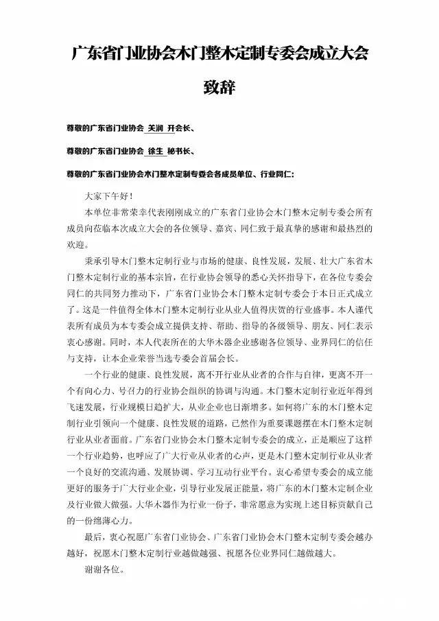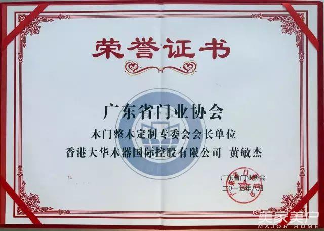 通过选举投票,大华木器董事长黄敏杰先生当选首届广东省门业协会木门整木定制专委会首任会长。