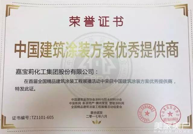 嘉宝莉集团荣膺中国建筑涂装方案优秀提供商