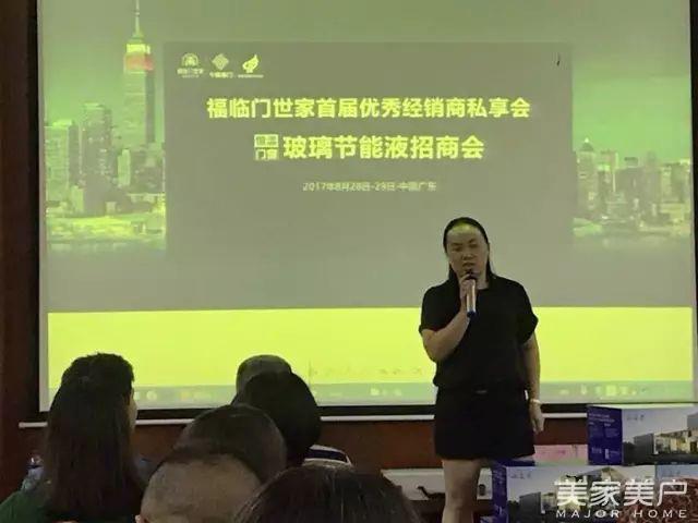经过中午的休息之后,下午的会议正式开始。首先,由金牌营销顾问罗老师主讲“如何打造一家持续盈利的门店”,罗老师对福临门世家玻璃刷新服务及产品项目进行介绍。罗老师表示,福临门恒温门窗玻璃节能液产品历时半年研发准备,之所以研发这款产品的原因在于,目前行业中对于节能的需求日趋明显,而房子的节能性与玻璃紧密相关,而门窗则是节能的根本。