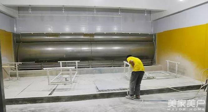 △无尘喷漆房,车间无尘化管理,木门产品喷底油,多重防护。