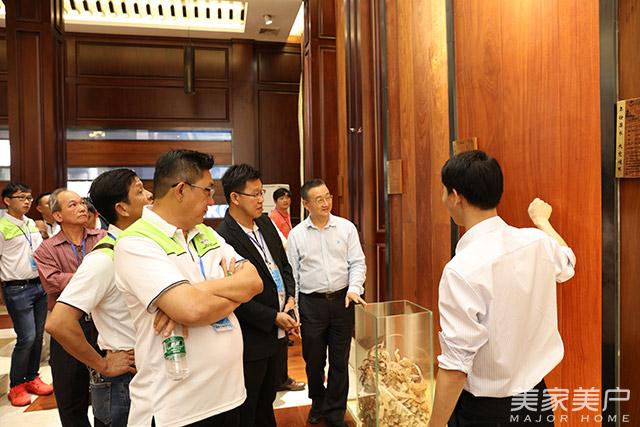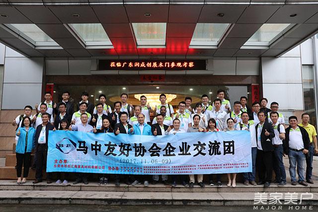 下午,考察团一行到达广东润成创展木业有限公司参观。在广东省门业协会会长、润成创展木业董事长关润开的陪同下,马来西亚考察团一行参观了润成创展木业公司的生产车间和展厅,并了解了广东木门的发展和制造工艺技术。关润开对马来西亚峇株巴辖家具同业公会考察团的到来表示热烈的欢迎,希望中马双方协会加深交流与合作。晚宴上,双方协会互换了战略合作牌匾。马来西亚峇株巴辖家具同业公会拿督蔡志贤会长表示,希望以后和广东省门业协会加强交流合作,进一步加深中马协会的友好合作与友谊。