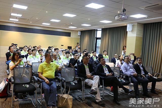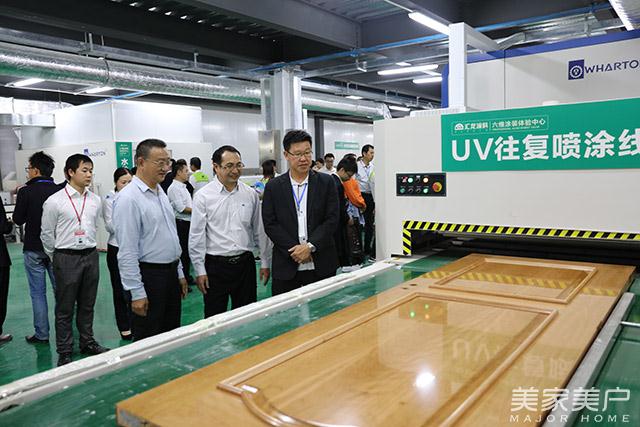 下午,考察团参观了大自然家居和汇龙涂料生产基地。汇龙涂料营销总监尹志明向考察团讲解了涂料的应用工艺和汇龙六维涂装的技术,为家居、木门行业企业提供一站式涂装的解决方案。