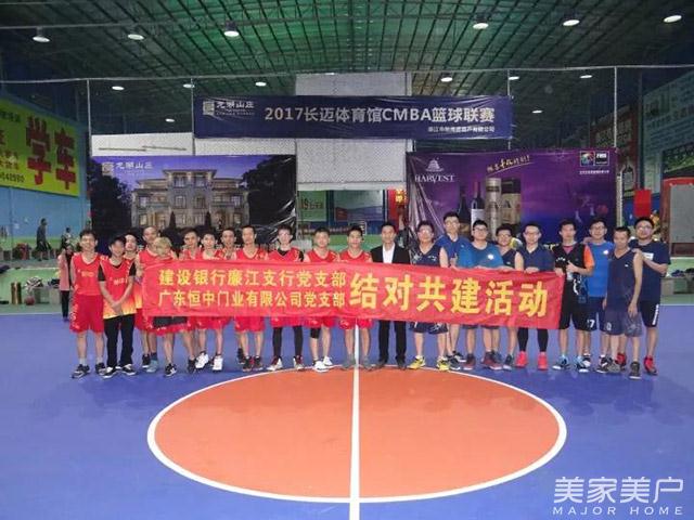 为认真贯彻落实党的十九大精神,加强基层组织建设,进一步丰富职工文体生活,2017年11月23日晚,建设银行廉江支行党支部与广东恒中门业有限公司党支部进行“支部结对共建”篮球友谊赛。