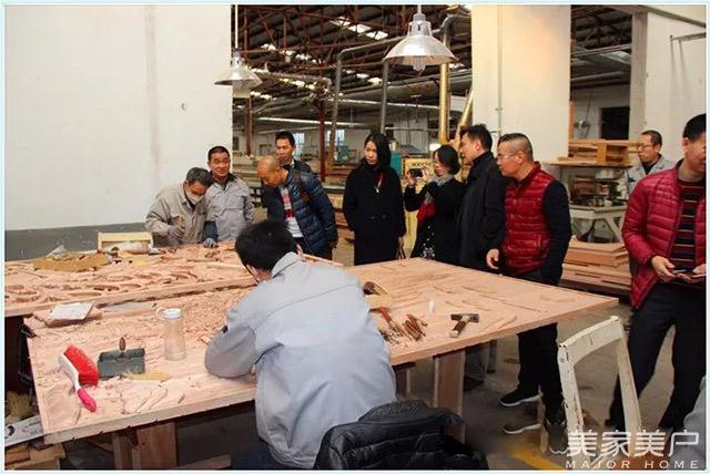在王绍新总经理的陪同下,陈辉庭董事长一行首先参观了万家园现代化的生产车间,从甄选环保原材到引进现代化的德意系木作设备、从全线水性漆产品到VOCs环保处理设备……九大生产车间全面开放,参观团看的仔细,听得认真,大家纷纷对万家园在木作工艺、环保涂装、精益管理和绿色制造等方面的成功经验表示钦佩。