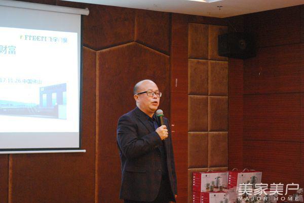 在现场,主持人进行了精彩的开幕词之后。广东飞宇门窗总经理常宝琛上台致辞,针对现在经销商们如何做好选择行业以及品牌的问题,首先介绍了门窗作为建材行业的最后一块蛋糕,具备良好的发展市场前景,同时表示经销商们想要选好行业,选好品牌,就需要选择那些有责任心、有规划、有未来的企业。做好选择之后,还需要坚持与厂家同心同德同力量,实现经销商与厂家一体化,才能一起达到共赢。