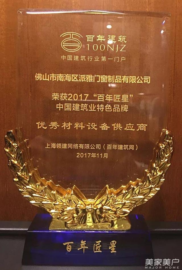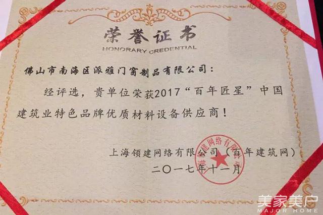 “百年匠星”的评选是对派雅门窗品牌的认可,也是对派雅继续前行的鞭策。不负匠星重托,不辱匠星使命,派雅门窗在2018年将继往开来,再创辉煌!
