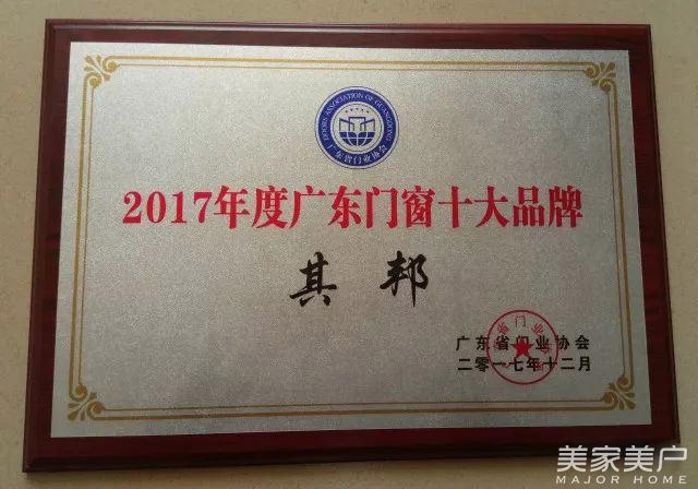 跨年荣誉┃其邦门窗荣膺“2017年度广东门窗十大品牌”