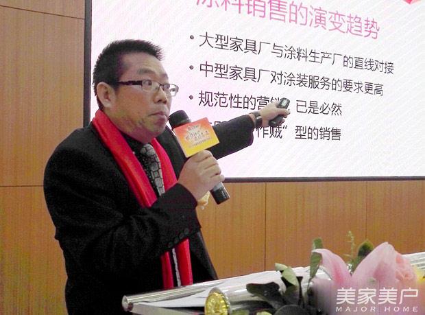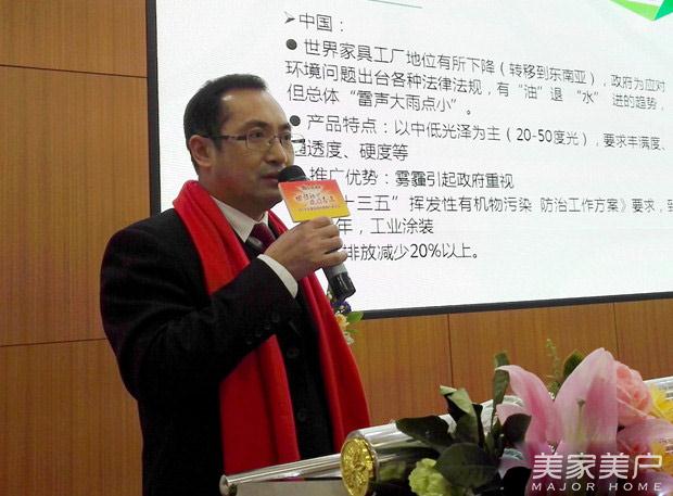 最后,汇龙涂料有限公司副总经理章剑就“环保时代家具漆营销思路”提出了自己的看法。首先是要快速了解掌握环保技术。其次要争当做好“转型环保”的标杆企业,“环保时代”已是大势所趋,汇龙涂料不能掉队。