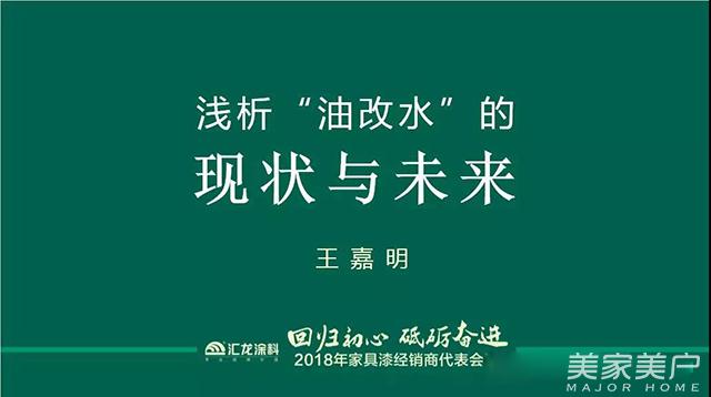 汇龙涂料常务副总经理王嘉明先生《浅析“油改水”的现状与未来》,结合国内外家具漆市场行情,总结和分析了汇龙涂料在涂装油改水方面的经验和收获,坚定了对油改水整体方案未来发展的决心。