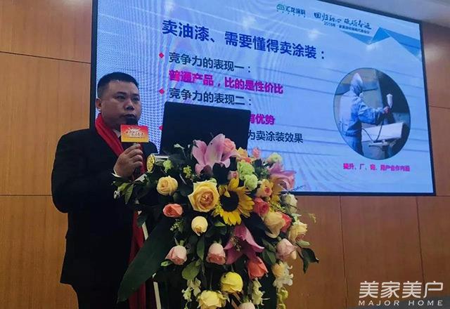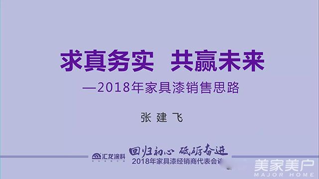 随后,汇龙涂料家具漆事业部总经理张建飞先生在《求真务实,共赢未来——2018年家具漆销售思路》演讲中,畅谈了对于家居产业链“共融、共生、共赢”的新时代市场环境下,销售人员变革思维,不断学习,提升能力的重要性。
