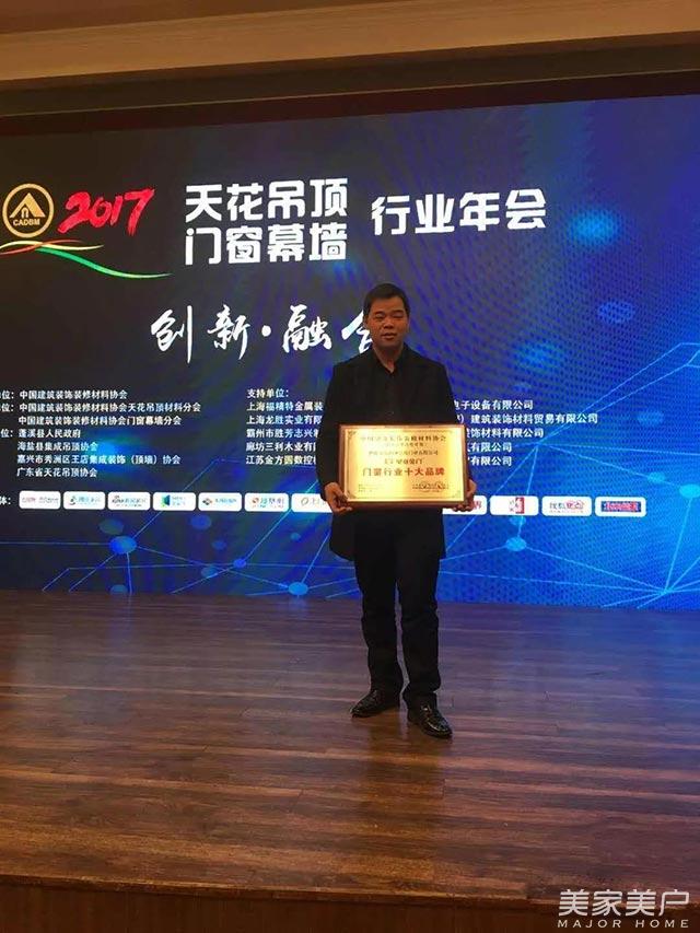 2018年1月12日,由中国建筑装饰装修材料协会天花吊顶材料分会和中国建筑装饰装修材料协会门窗幕墙分会颁奖盛典在北京隆重举行。皇庭金门董事长许董代表公司应邀出席。皇庭金门荣获2017年度《中国门窗行业十大品牌》!