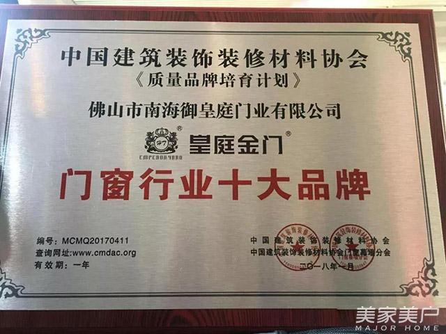 热烈祝贺皇庭金门荣获2017年度中国门窗行业十大品牌!
