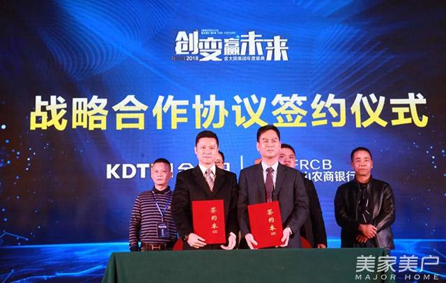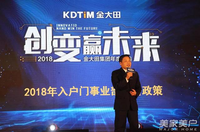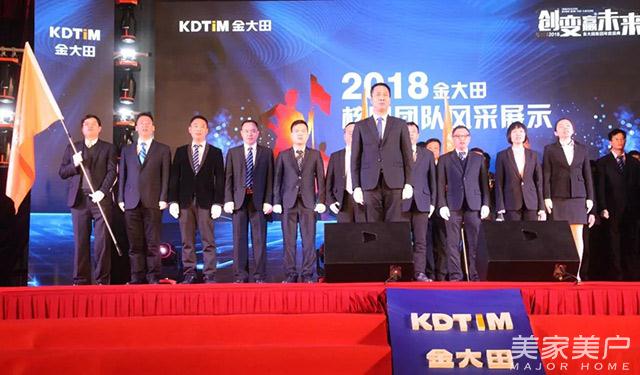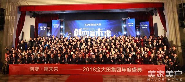 创变方能鏖赢新机,创变方能通达未来!2018年1月12日,广东金大田家居股份有限公司在山清水秀的佛山祈福仙湖酒店召开2018年会盛典,来自全国各地的近六百位产业链精英合作伙伴参加了本次年度盛会。在友好、融洽、积极、活跃的氛围中,会议全面回顾、总结了的2017年产业合作下的新商业模式推行中取得的可喜业绩,对过去一年表现优秀的产业链合作伙伴进行了表彰。年会上,金大田重点对2018年的一系列创新、变革的管理经营举措、品牌战略定位和新品规划等进行了部署与发布;同时,金大田也在本次年会与佛山农商银行、美的集团及广东联筑、广东荣业消防工程公司等产融单位签订了“2018战略合作协议”,为2018的创变和高速发展之路锦上添花!
