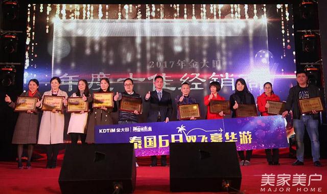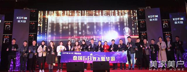 金大田2017年的荣光离不开默默支持我们的经销商合作伙伴、供应商客户和金大田员工。在结束白天的会议后,晚上,举行了本次年会盛典的千人答谢晚宴。晚宴上,金大田特意准备了9999足金金牌、IPHONE 8、豪华出国游等各类丰厚奖品对过去一年来表现优异的部分产业链合作伙伴和员工进行了表彰,同时也为答谢这一路以来的陪伴和支持我们的所有人准备了精彩纷呈的节目表演和惊喜多多的抽奖环节。最后,在一片欢声笑语和绵绵祝福中,本次2018金大田年会盛典落下帷幕。再次感谢并恭喜所有获奖的经销商、供应商和员工家人,预祝金大田、预祝他们在2018创造更多的辉煌。