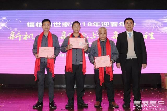 企业的发展离不开每一个团队的努力,企业的成功更少不了每一位员工的奉献。进一步激发福临门员工的积极性、主动性与创造性,年会上进行优秀员工、忠诚功勋奖、优秀主管奖、优秀经理奖、岗位标兵奖、最佳新人奖、敬业爱岗奖、勤劳贡献奖和技术进步奖奖的颁奖表彰。同时感谢每一位员工对公司的辛苦付出,期盼在新的一年福临门世家员工们继续与公司一起展翅高飞,再创新辉煌!