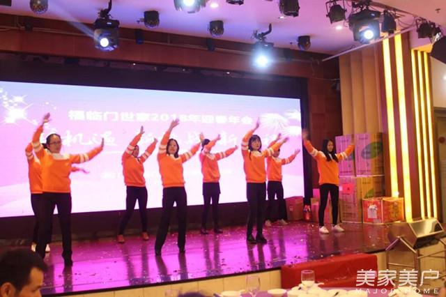 福临门各部门员工精心准备的节目将年会的氛围推向高潮,精彩的表演节目博得台下家人们阵阵的掌声,热情的舞姿,斗志的步伐,铿锵的玫瑰,幽默的小品,悠扬的歌声,福临门员工多样的才艺让家人们大饱眼福,大呼过瘾!
