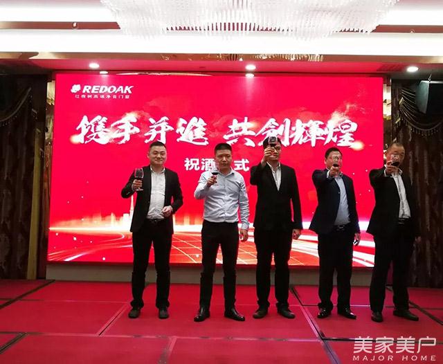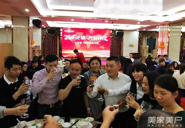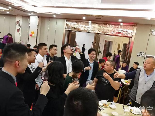 晚宴开始前,总经理黄以光、副总经理黄瑶根、品牌部总监李驰平、行政经理陈均禄、生产厂长杨胜江邀请在座来宾和家人们共同举杯,祝愿红橡树门窗在新的一年里合作共赢,再创辉煌!晚宴沉浸在一片其乐融融的氛围,此次晚宴不仅是一场共谋发展的交流会,更是一场畅叙友情的友谊会。