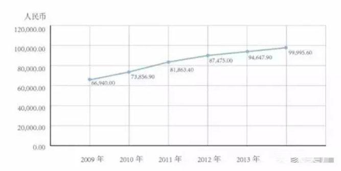 经济的快速增长,伴随而来的是人们对于生活品质提升的需求以及国家对于大气环境和能源的保护。这样的需求,促使高性能节能门窗的应用越发广泛。中国地域辽阔,气候与地理环境差异较大,以与欧洲气候相近的北京为例,北京 2009 年~2014 年人均 GDP 发展如下:
