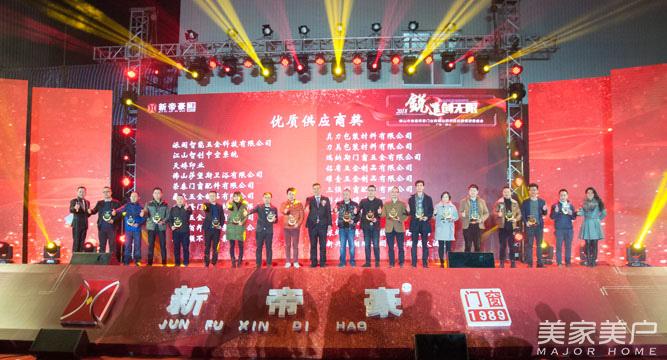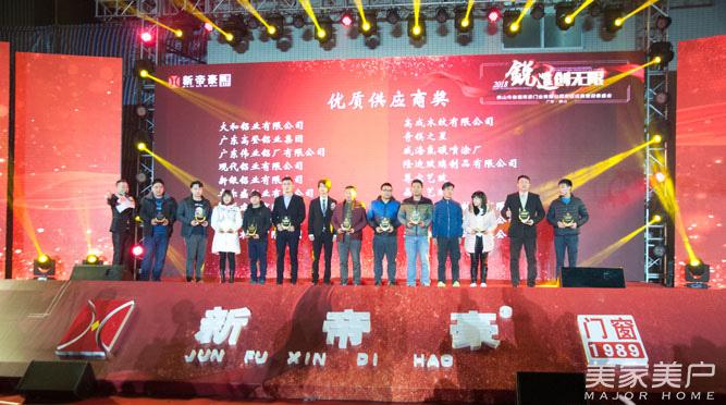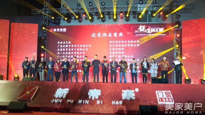 在晚会上新帝豪门窗董事长和总经理现场为优秀供应商颁奖。