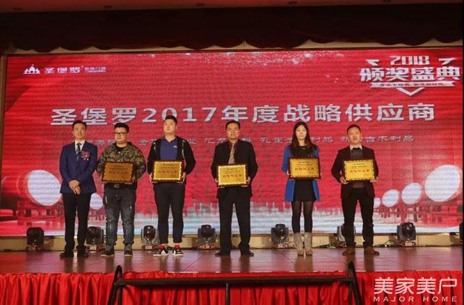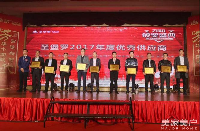 为感谢一众合作伙伴的鼎力合作,表彰过往一年中为圣堡罗发展作出的重大贡献,在颁奖盛典上颁发了2017年度战略供应商及优秀供应商。