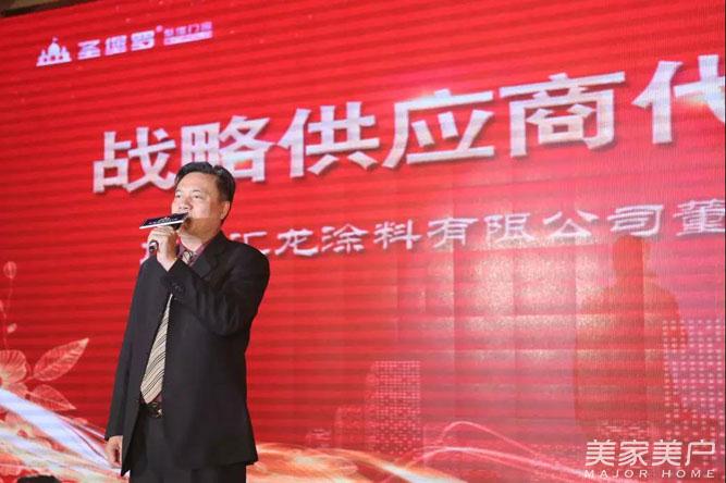战略供应商代表“汇龙涂料”董事长陈辉庭、优秀供应商代表“伟业集团”销售副总罗健升先生分别发表获奖感言。汇龙涂料陈董指出:双方长期合作紧密,今后将继续共同推动行业标准的制定并积极推广环保水性漆等新技术的应用。伟业集团罗总则表示,愿与圣堡罗加强合作,助力门窗产业升级。