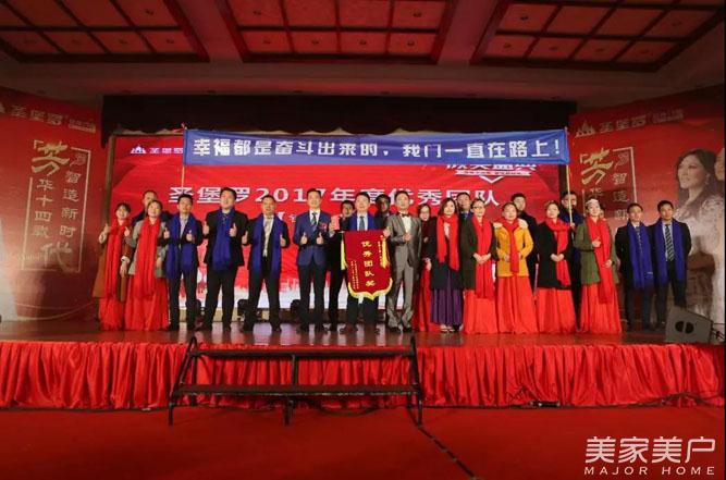 晚会上,全国工商联家具装饰业商会门业专业委员会主席、佛山市门窗业协会会长、圣堡罗整体门窗董事长吴国洪先生发表新年致辞。他提到:“2017年对圣堡罗来说是突破性的一年,不仅超额完成了年度任务,此外还在全国成功招商过百家专卖店,实现了销售业绩与品牌建设的双丰收;整体门窗理布局深受市场欢迎,战略优势突显。”